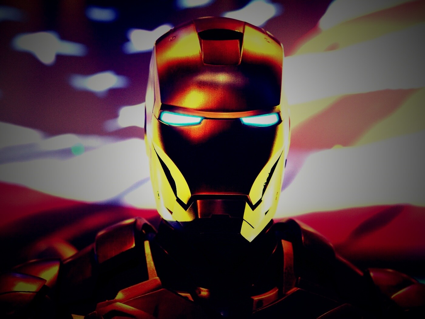 «Железный человек на фоне американского флага»
