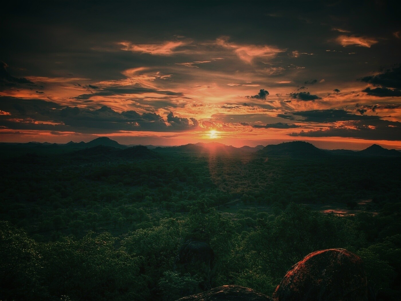 Обои для рабочего стола «Закат в Африке» 1400х1050 с фильтром earlybird (оригинал 2560х1600)