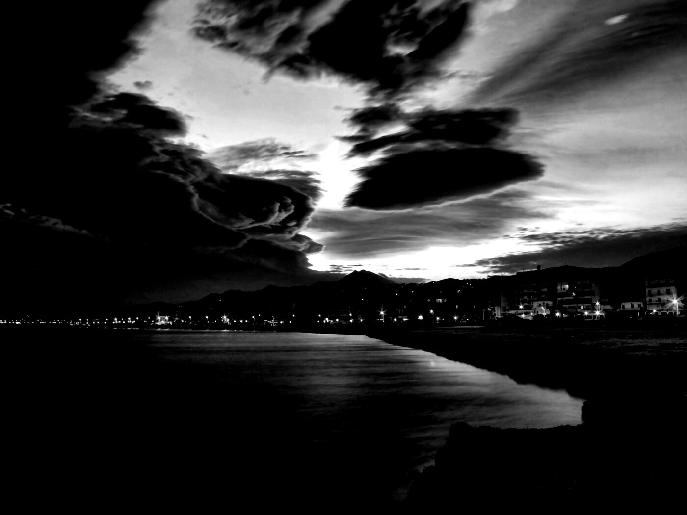 «Красивый закат над городом у моря»