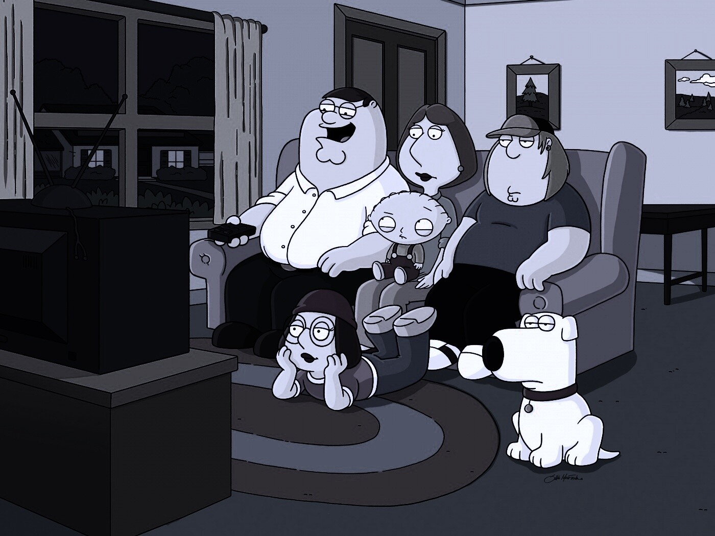 «Гриффины всей семьей перед телевизором»