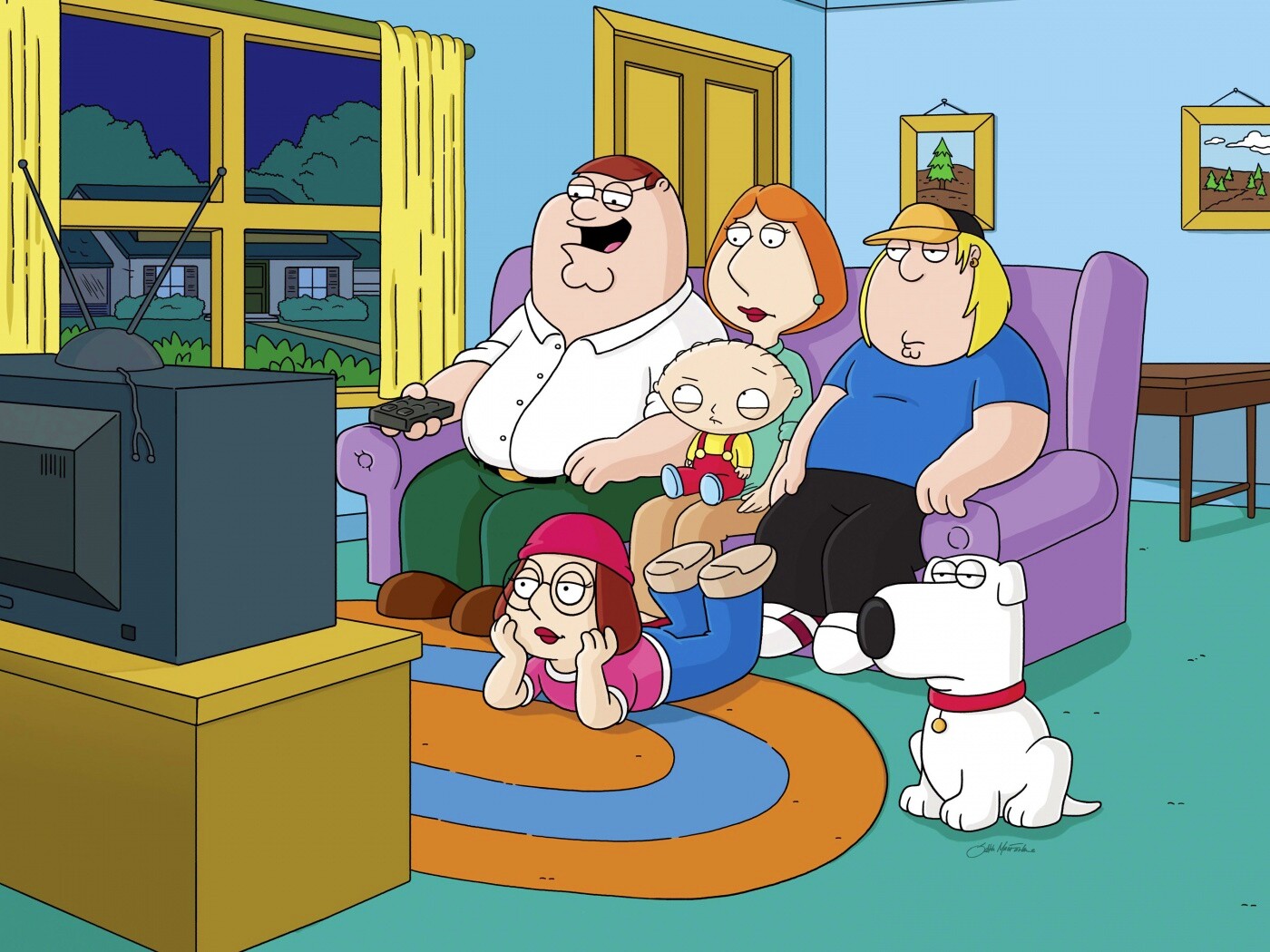 «Гриффины всей семьей перед телевизором»