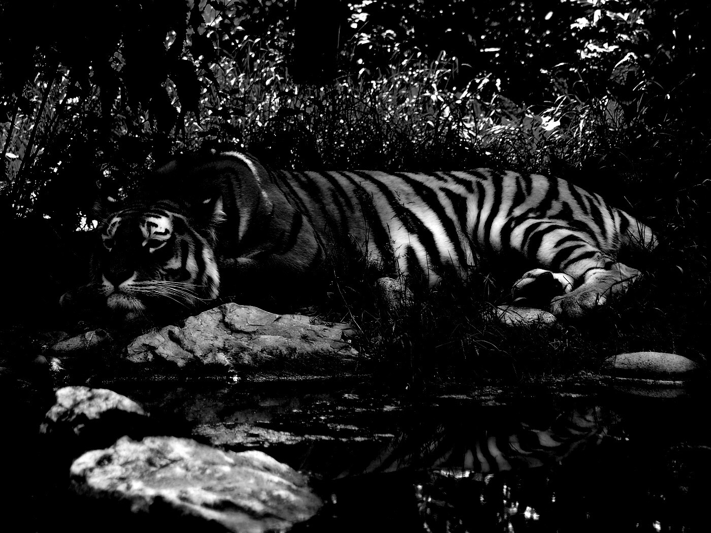 Обои для рабочего стола «Тигр отдыхает» 1400х1050 с фильтром inkwell (оригинал 2560х1600)
