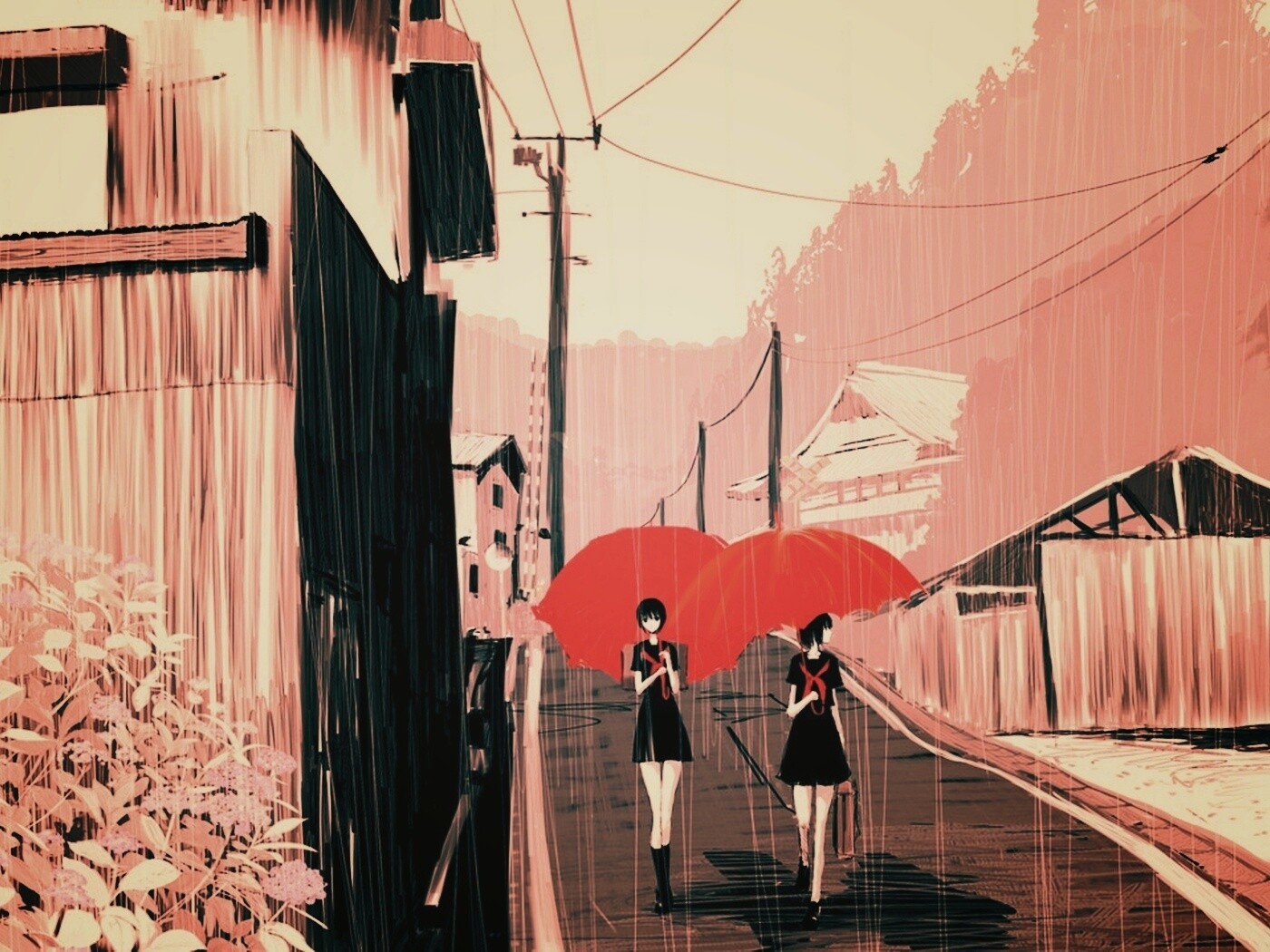 «Девушки с красными зонтами»