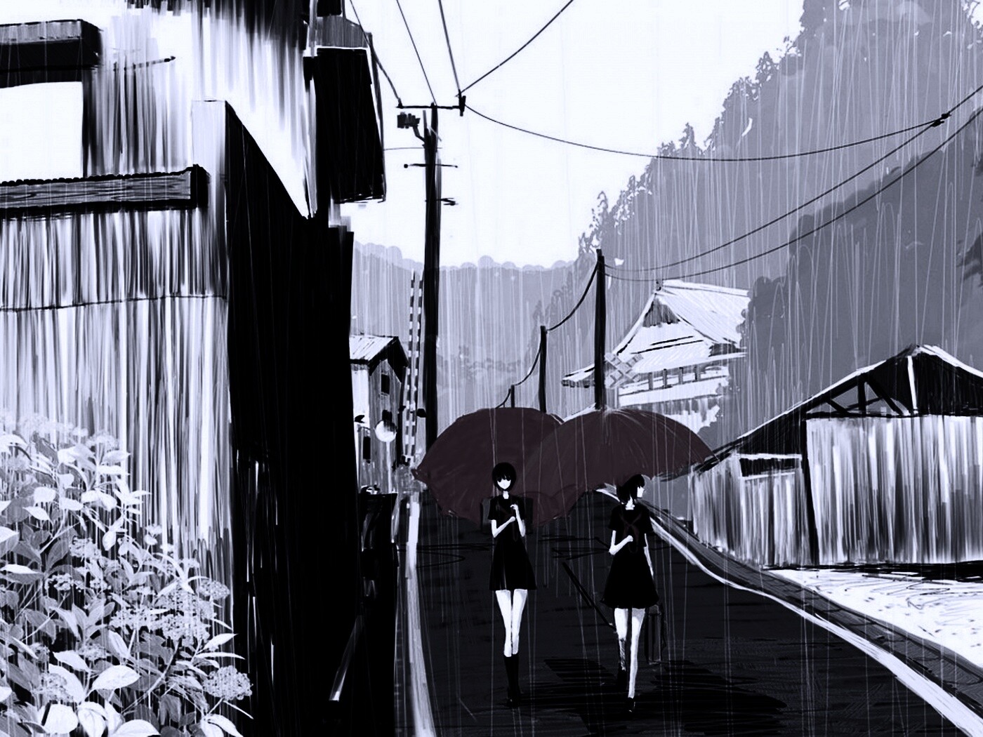«Девушки с красными зонтами»