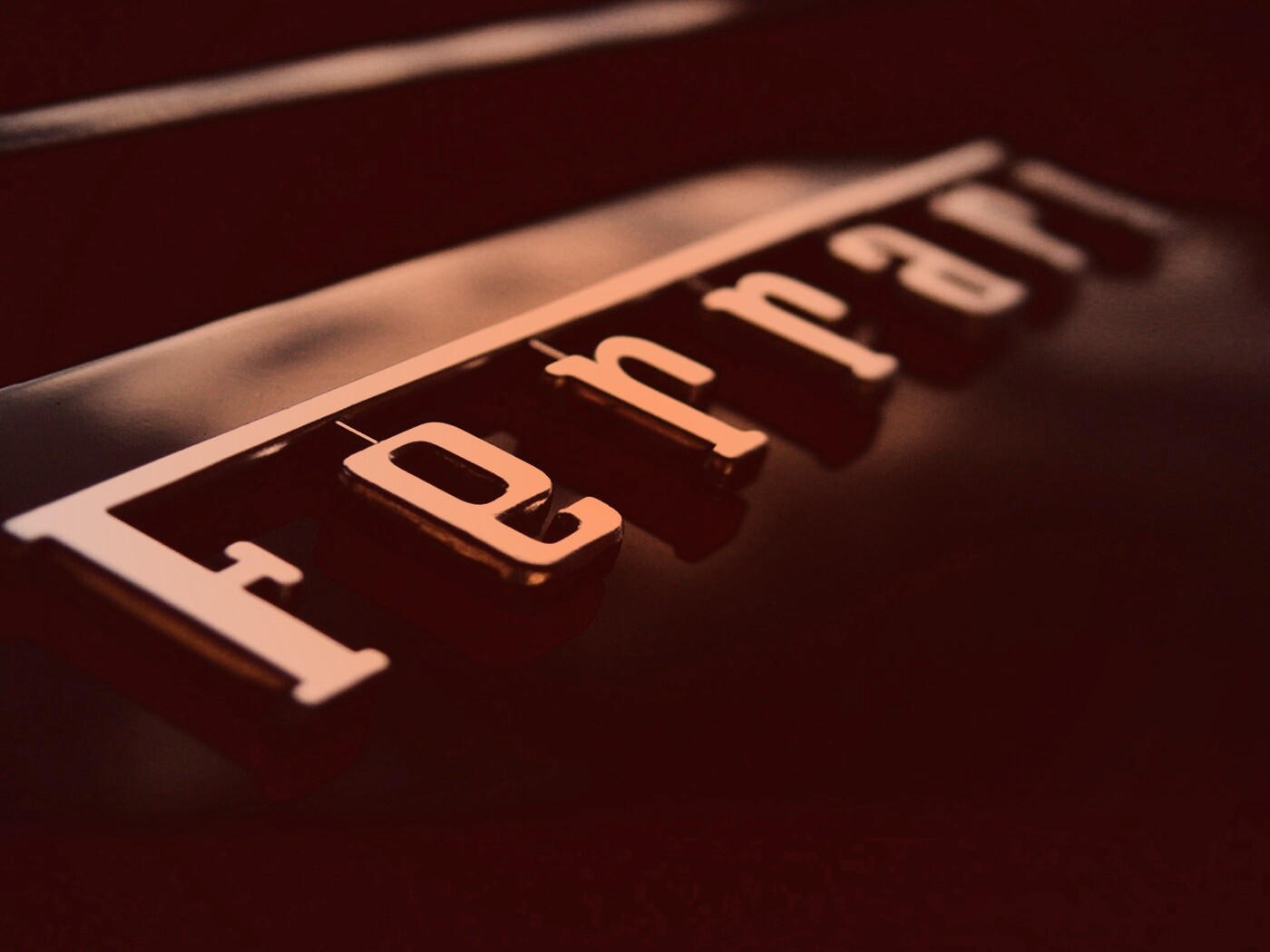 Обои для рабочего стола «Хромированный логотип Ferrari» 1400х1050 с фильтром toaster (оригинал 1600х1200)