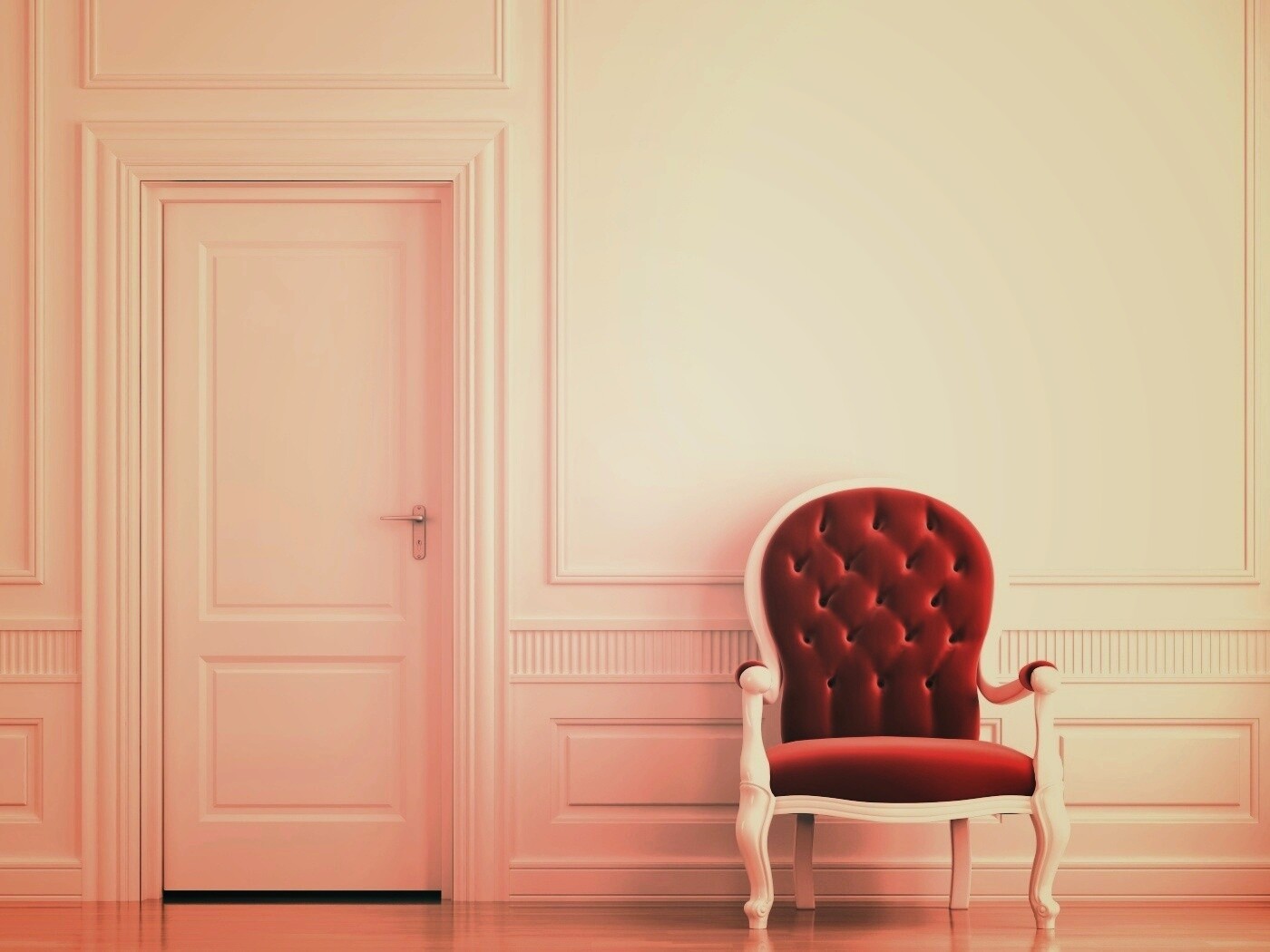 «красное кресло в белой комнате»