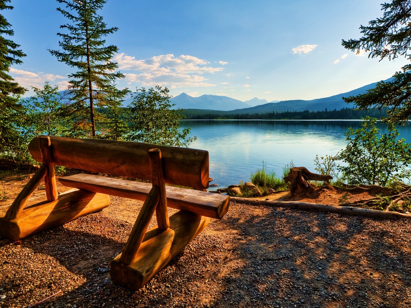 «Деревянная скамья на берегу озера»