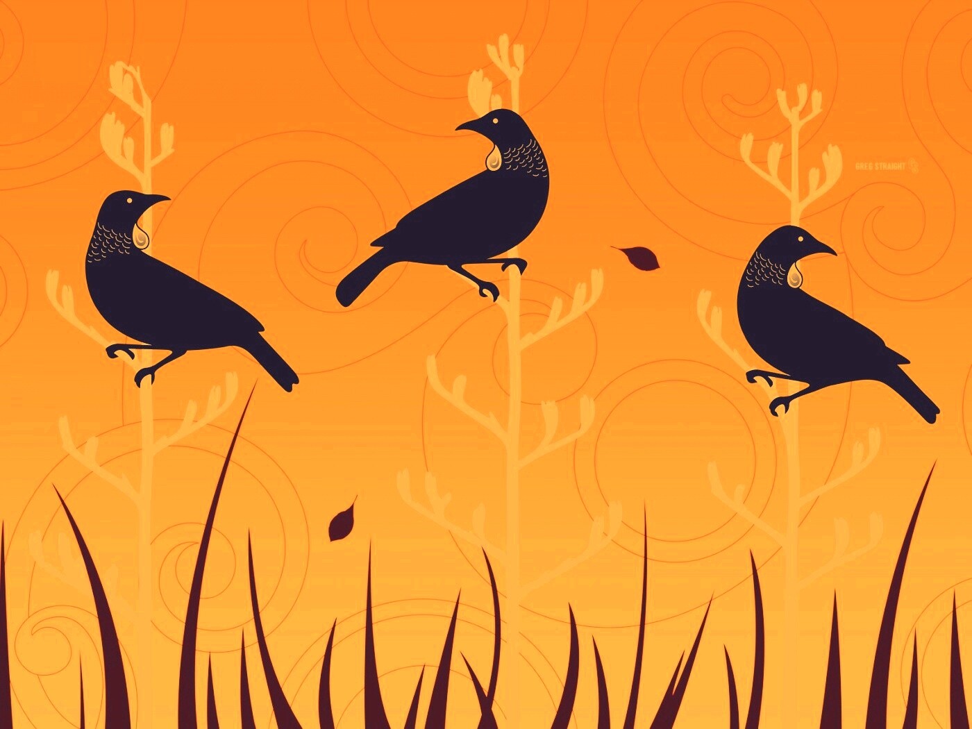 «Векторные стилизованные птицы на ветках дерева»