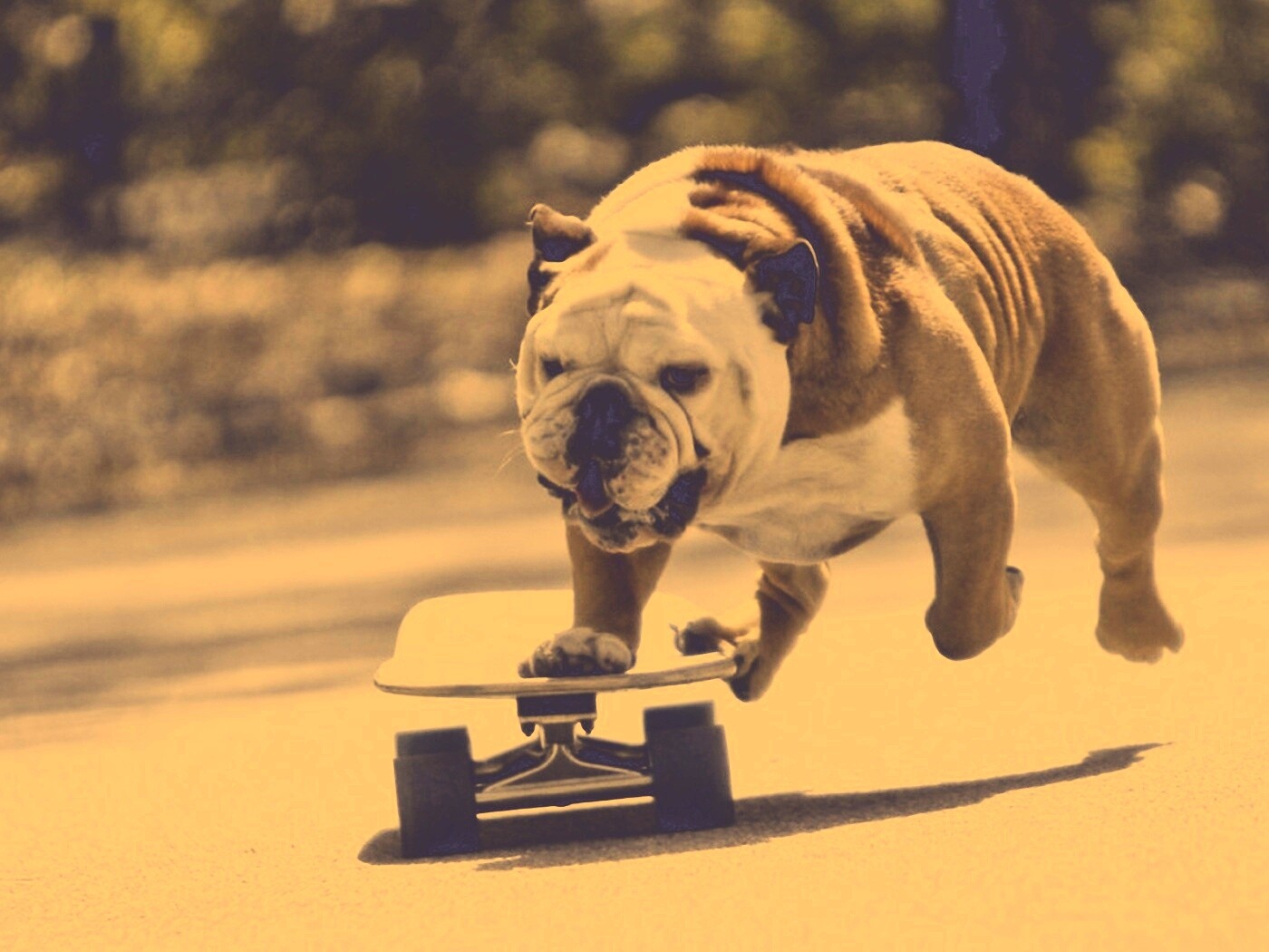 Обои для рабочего стола «Собака на скейтборде» 1400х1050 с фильтром nashville (оригинал 1920х1200)