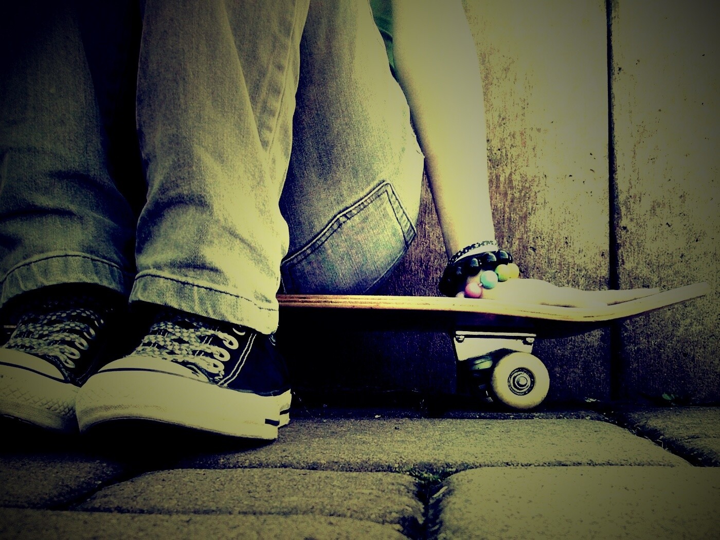 «Девушка сидящая на скейте»