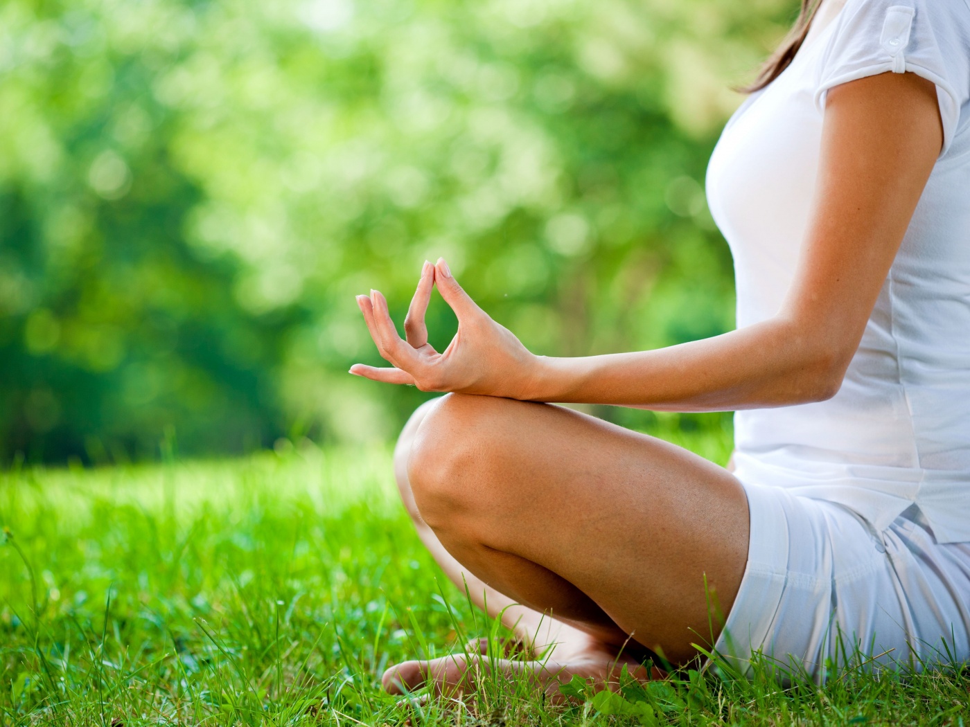 «Девушка медитирует в позе лотоса на траве»