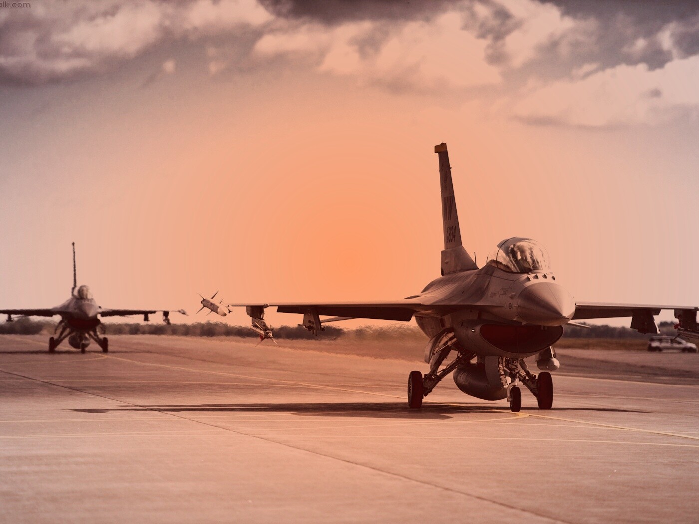 «Истребители f16 Falcon на взлетной полосе»