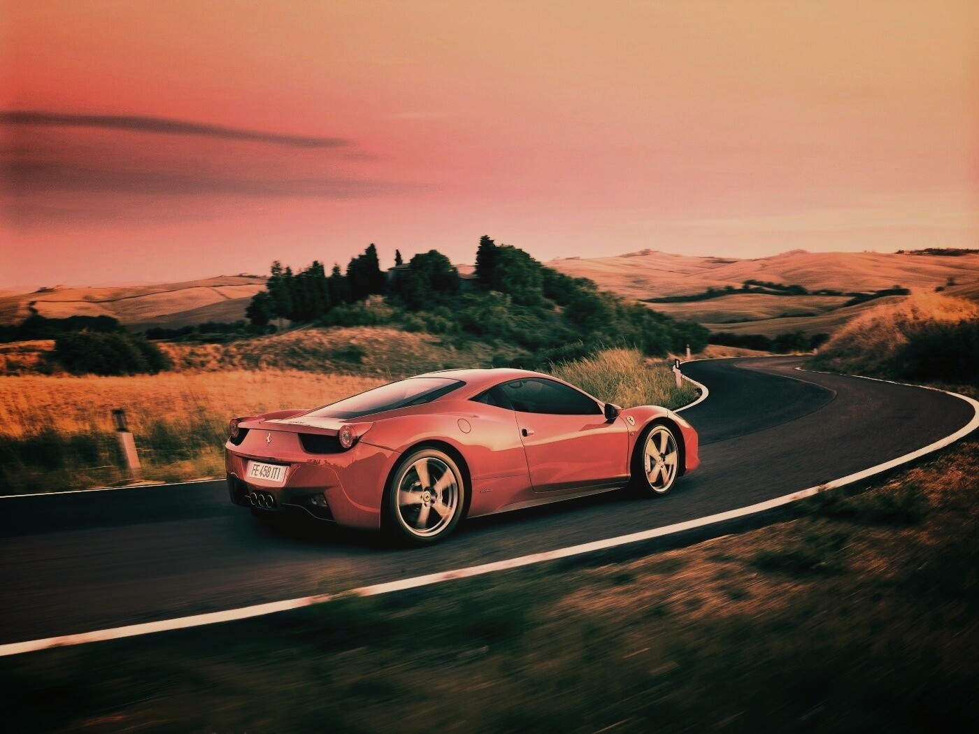 «Красная феррари на извилистой дороге»