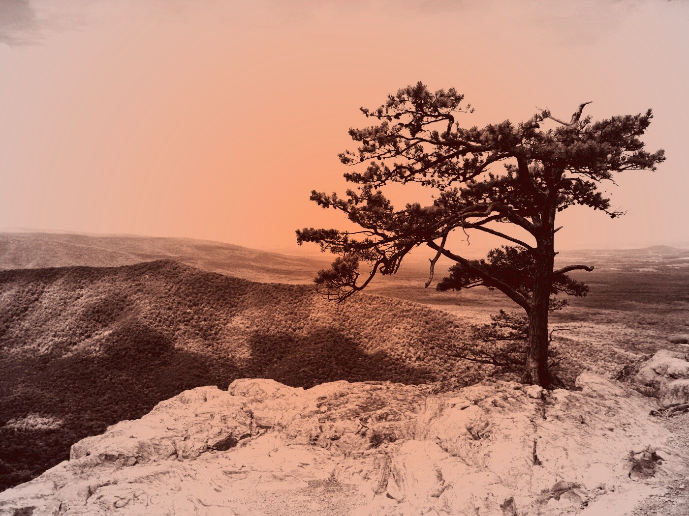 «Горное дерево в черно-белых тонах»