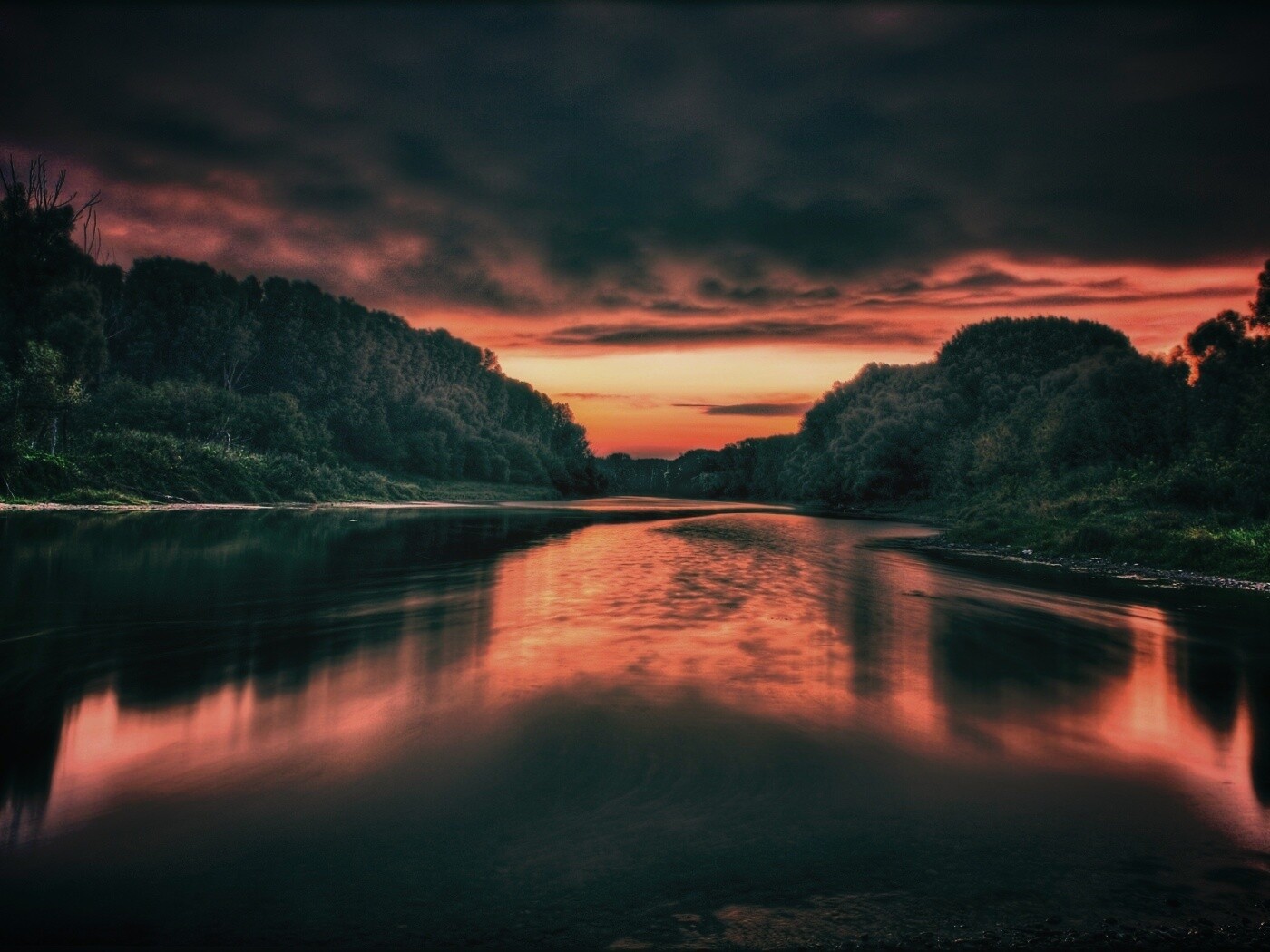 «Багровый закат и водная гладь»