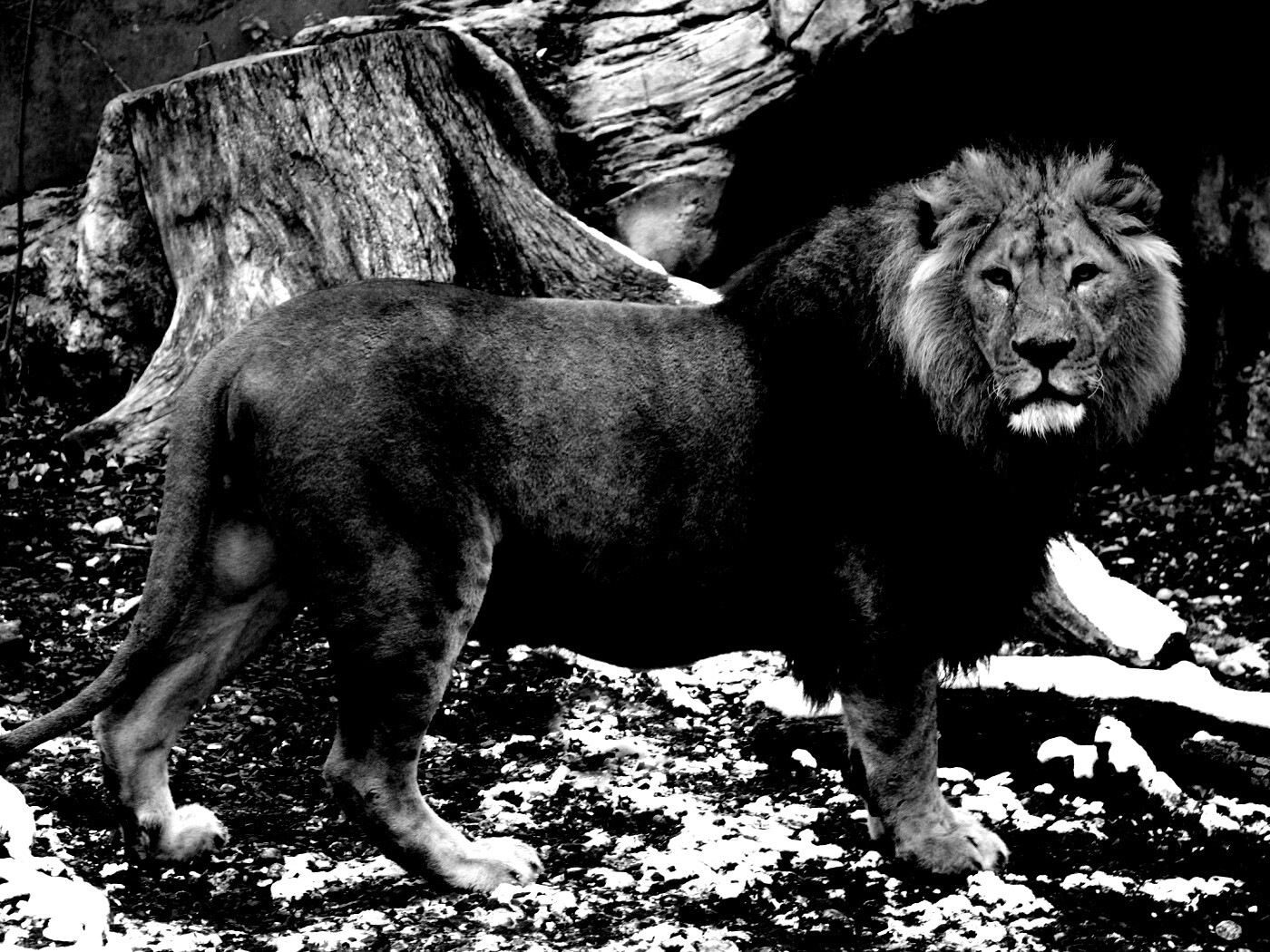 Обои для рабочего стола «Красивый лев в лесу» 1400х1050 с фильтром inkwell (оригинал 2560х1600)