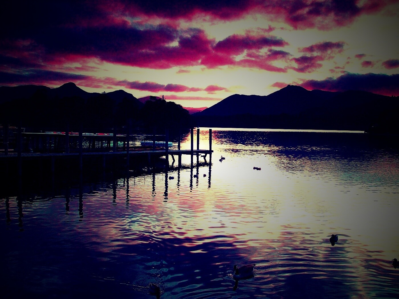 «Причал на озере и утки»