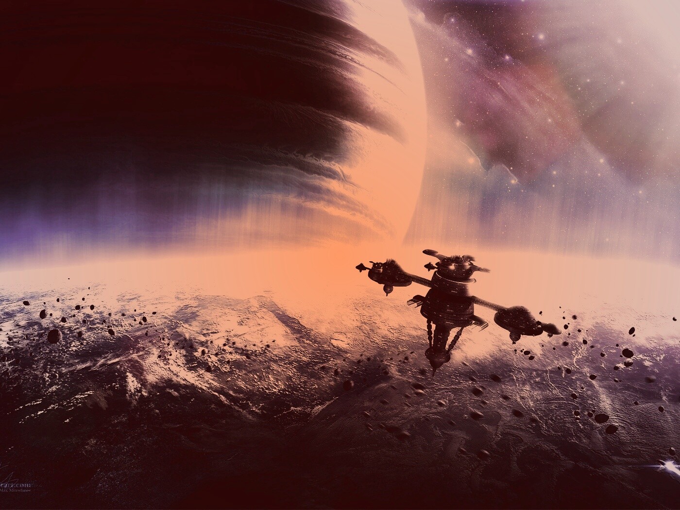 Обои для рабочего стола «Космический корабль» 1400х1050 с фильтром toaster (оригинал 1920х1200)