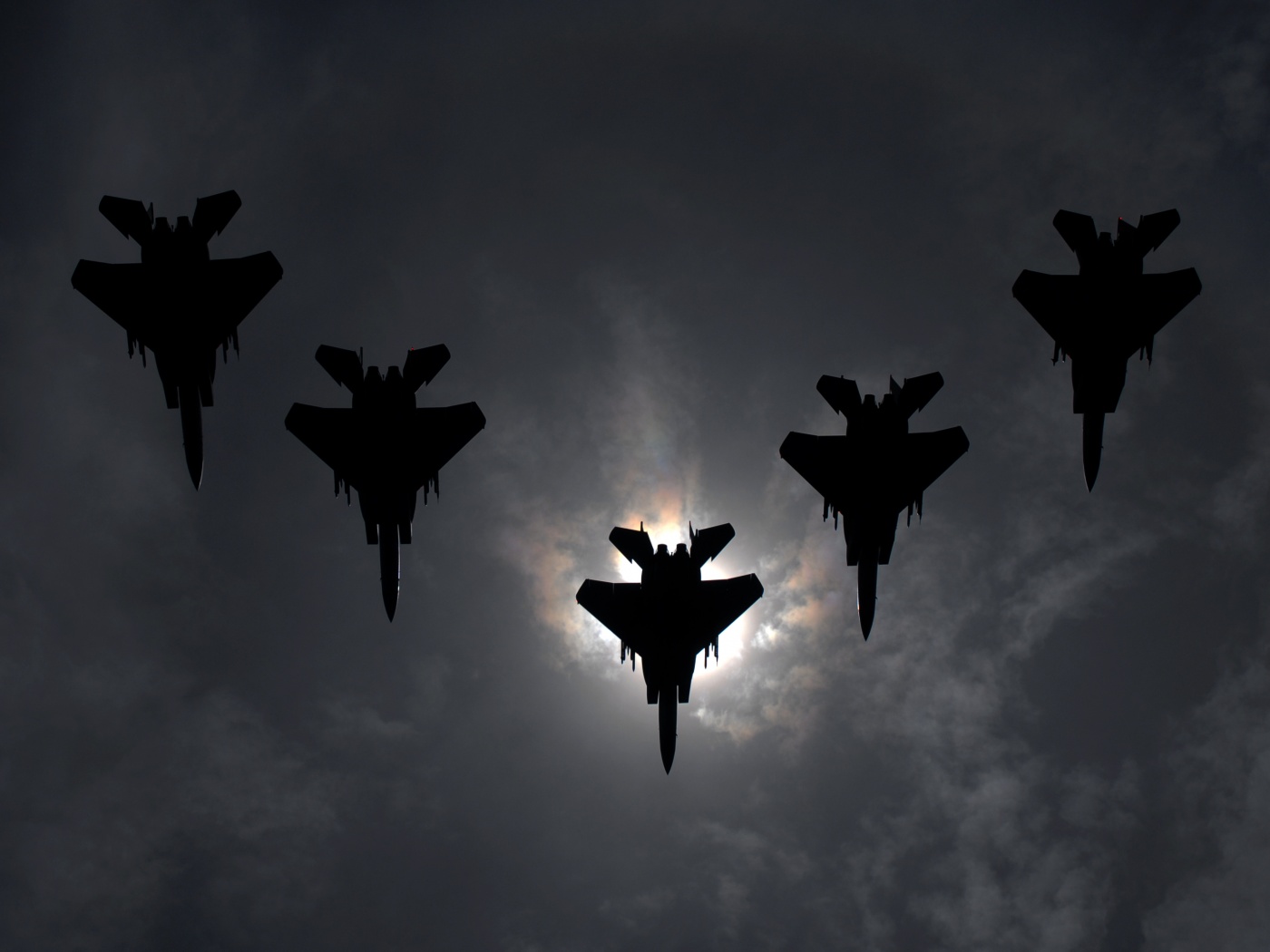 Обои для рабочего стола «Ряд истрибителей на фоне солнца» 1400х1050 (оригинал 3172х2262)