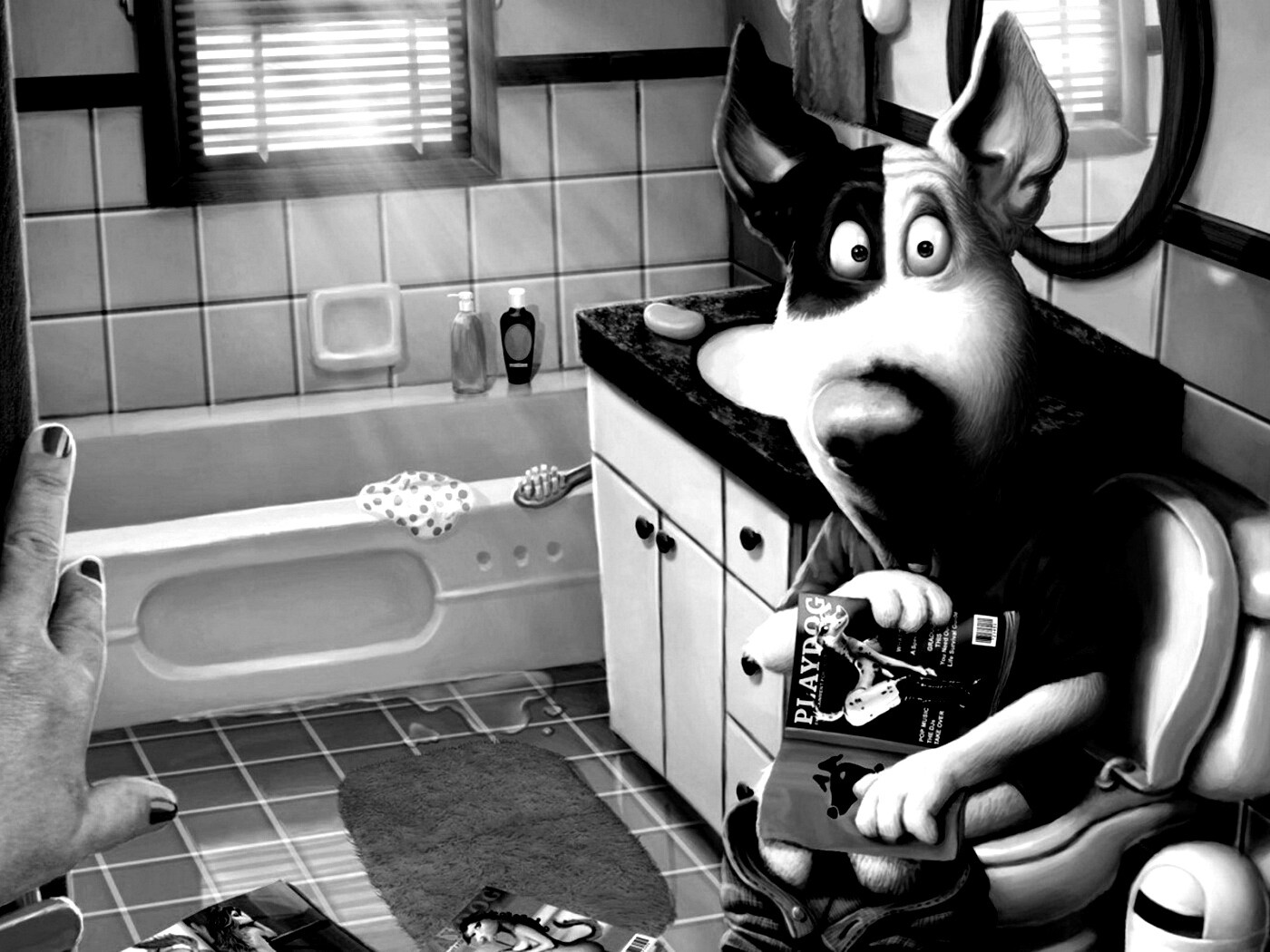 Обои для рабочего стола «Мастурбирующий пес спалился» 1400х1050 с фильтром inkwell (оригинал 1920х1200)
