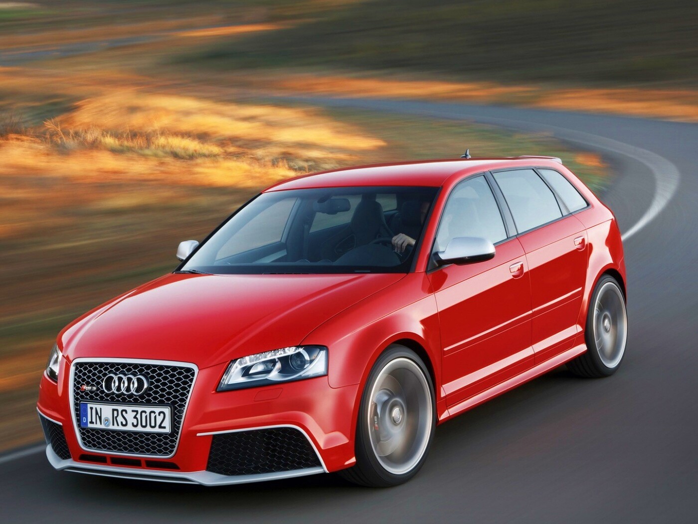 «Красная ауди мчится по извилистой дороге»