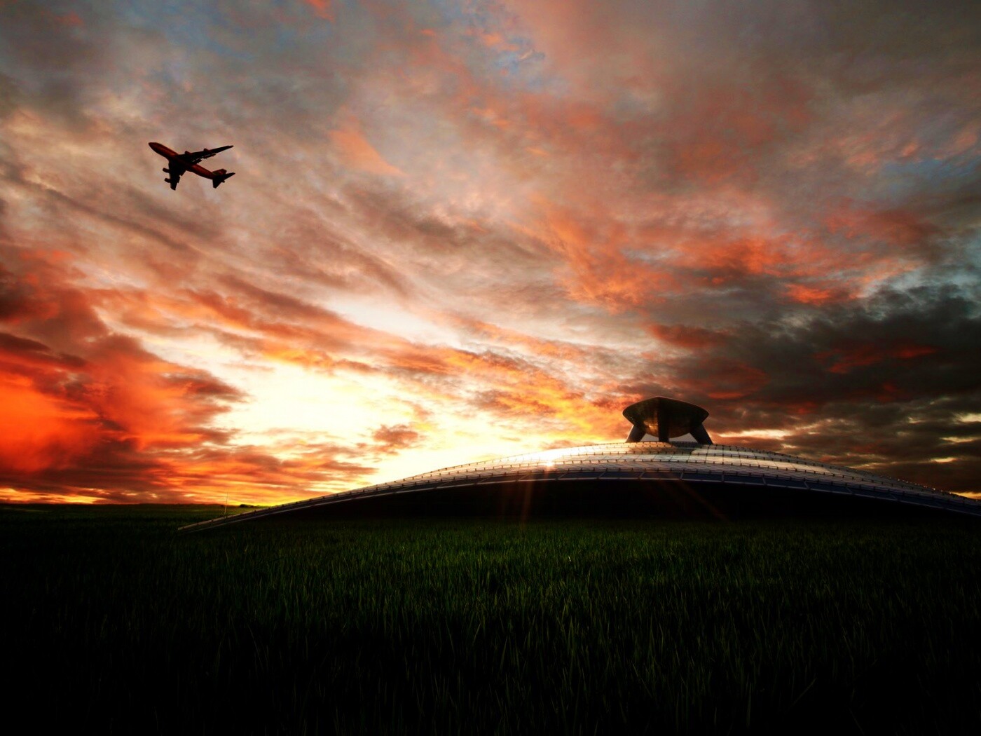 «Самолет в закатном небе»