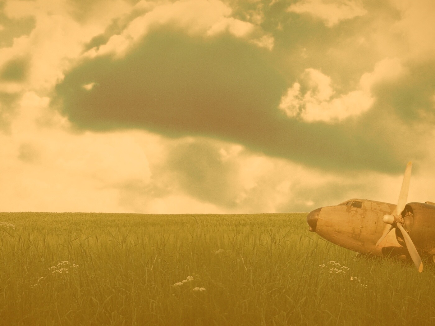 «Старый ржавый самолет на лугу»