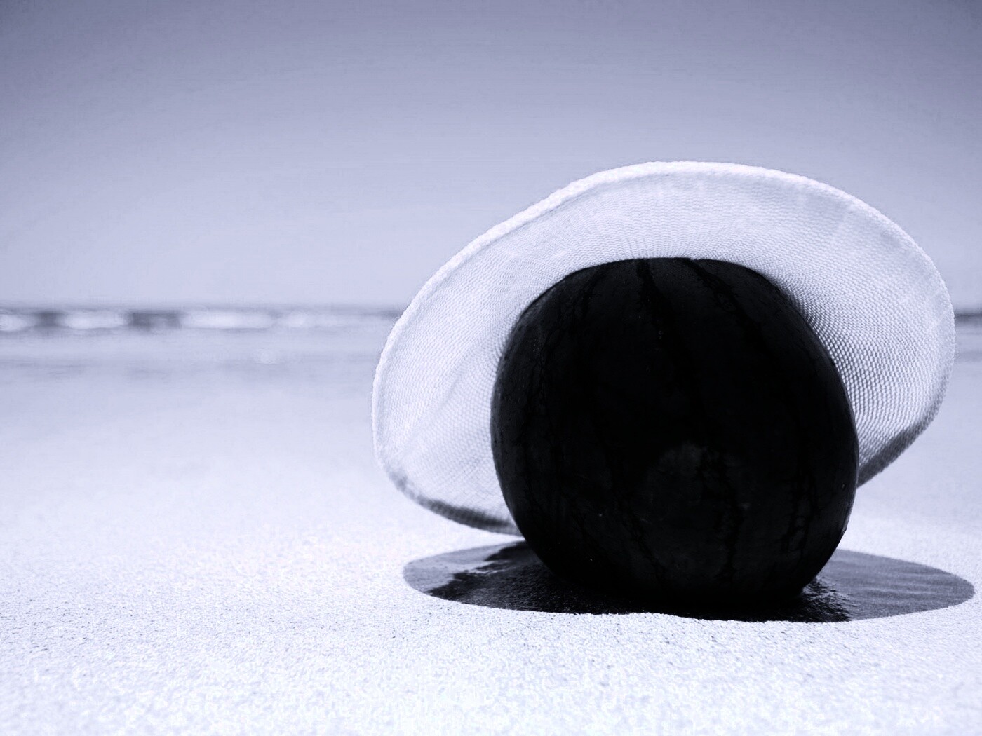 «Арбуз в летней шляпке на пляже»