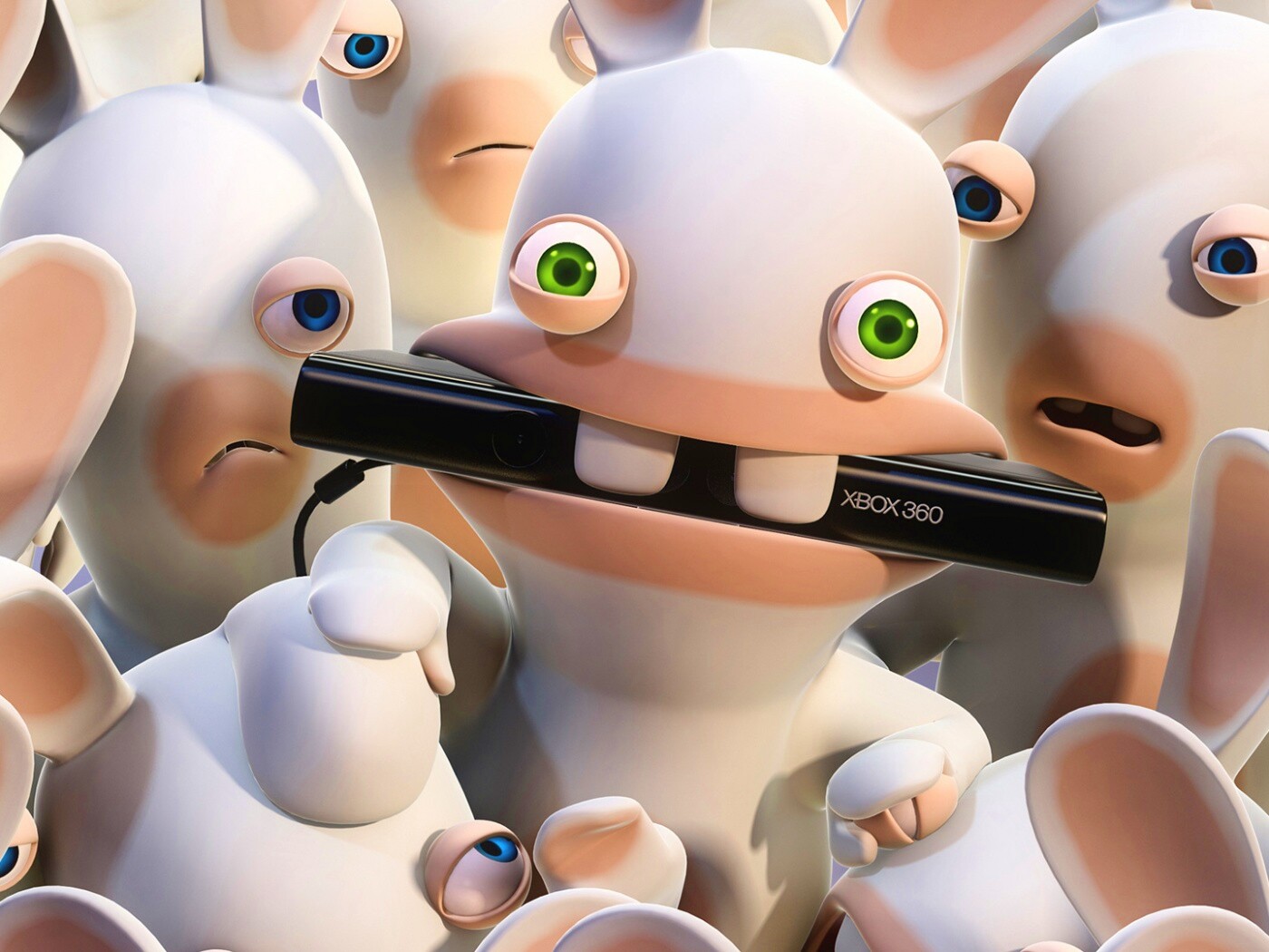 Обои для рабочего стола «Кролик грызет кинект» 1400х1050 с фильтром vibrance (оригинал 1920х1080)