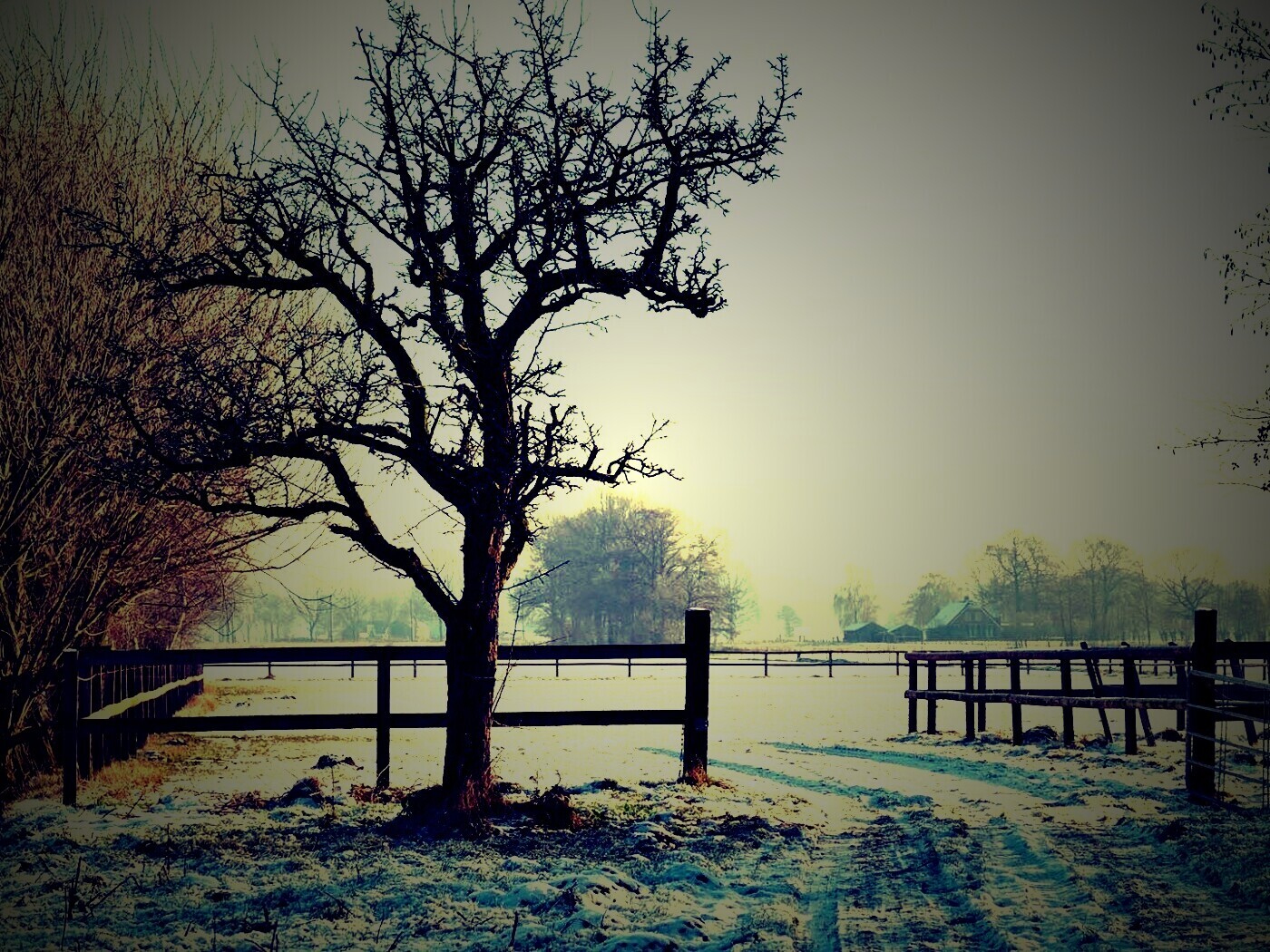 Обои для рабочего стола «Зимний пейзаж» 1400х1050 с фильтром lomo (оригинал 1920х1080)