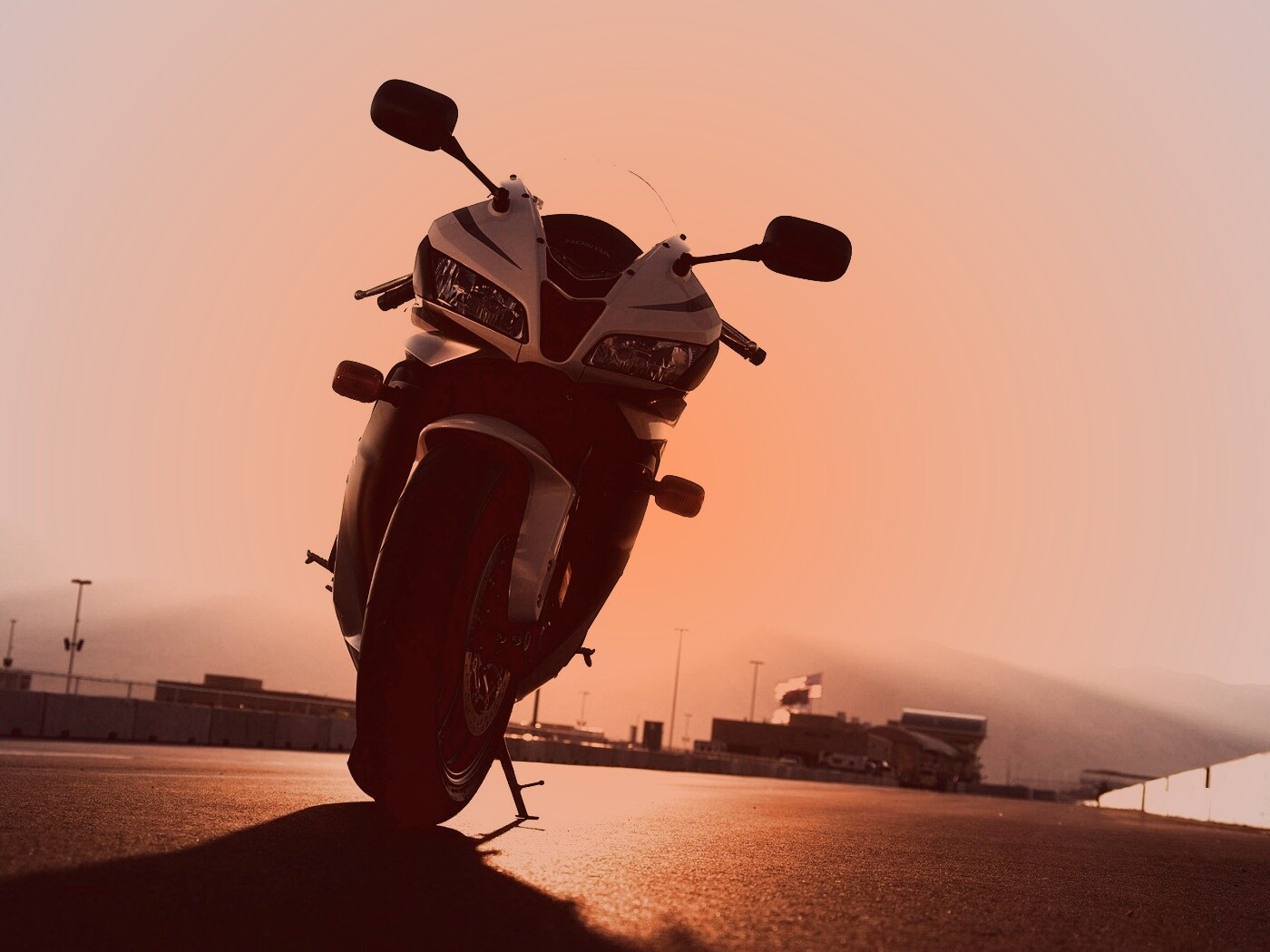 «Мотоцикл на фоне заходящего солнца»