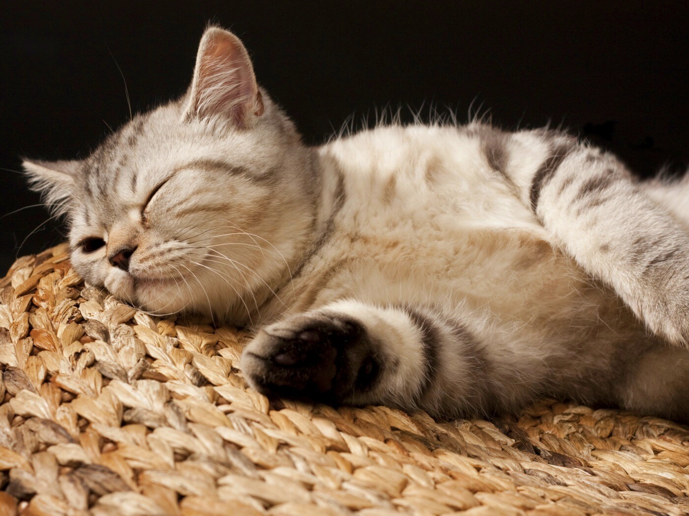 «Пушистый кот спит на корзине»