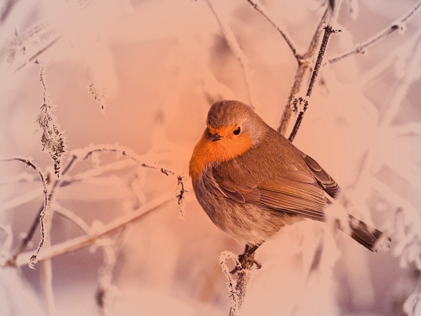Обои для рабочего стола «Птичка на ветке» 1400х1050 с фильтром toaster (оригинал 1920х1200)