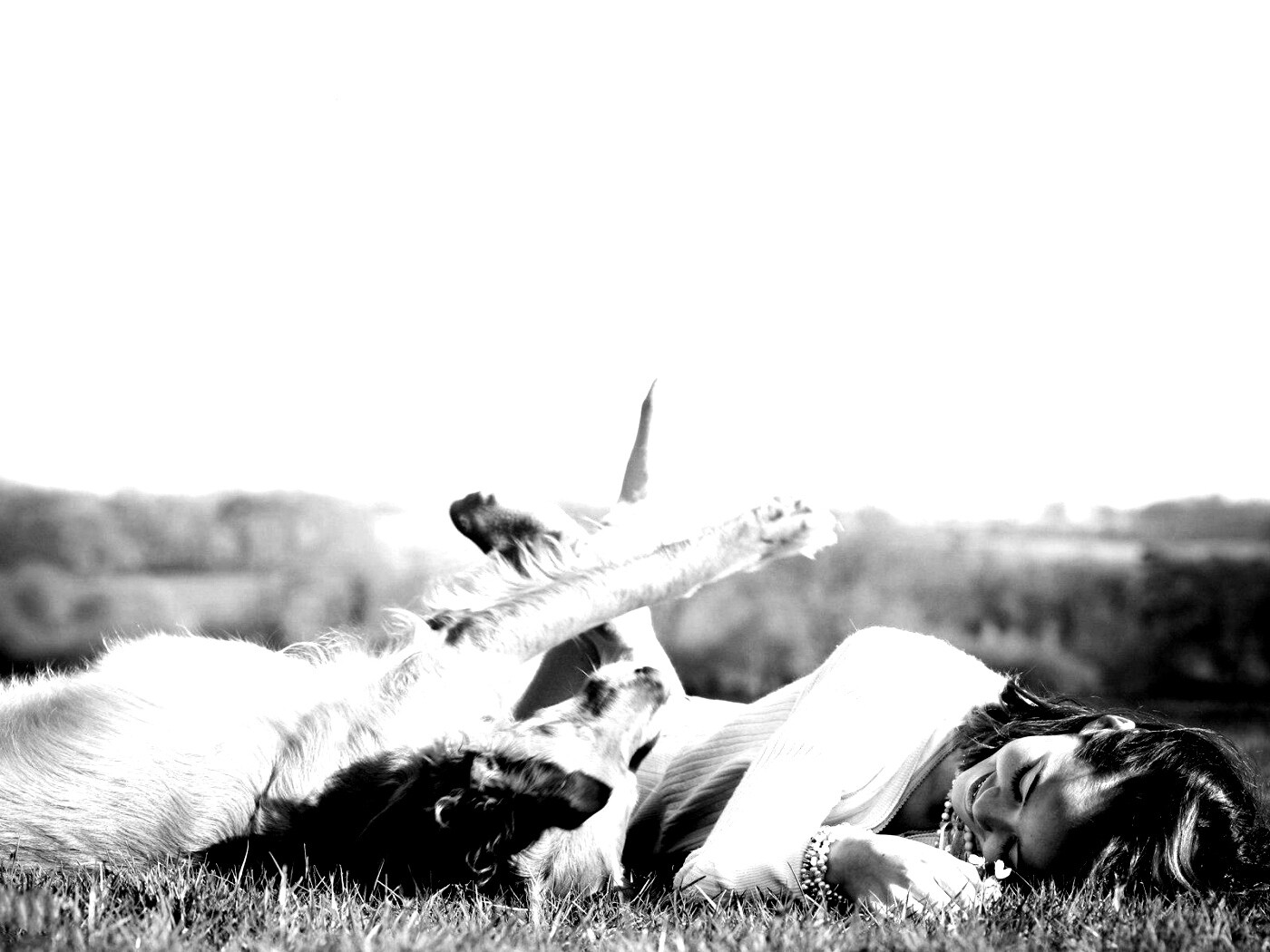 «Девушка и собака валяются на траве»