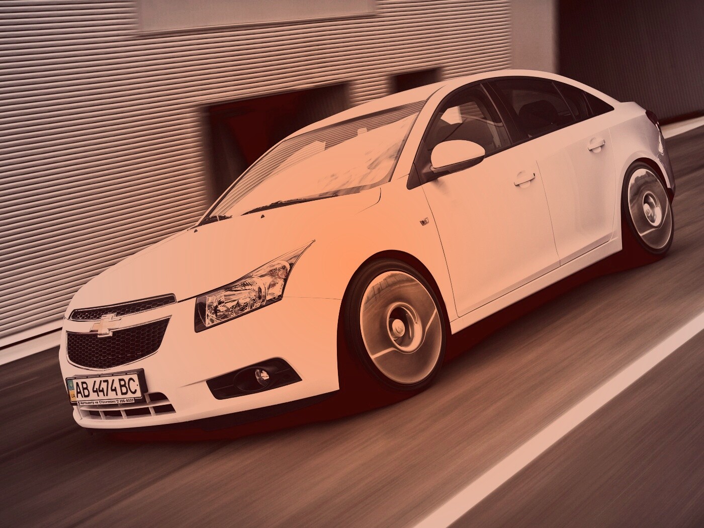Обои для рабочего стола «Chevrolet Круз белый седан» 1400х1050 с фильтром toaster (оригинал 2500х1600)