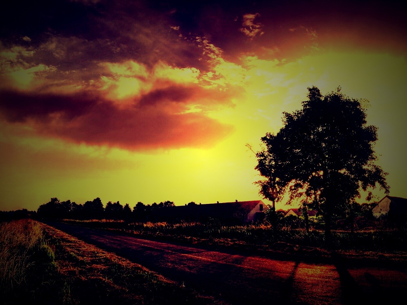 Обои для рабочего стола «Закат на фоне дерева в HDR» 1400х1050 с фильтром lomo (оригинал 1920х1200)