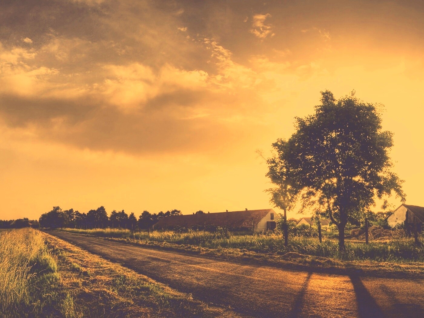 «Закат на фоне дерева в HDR»