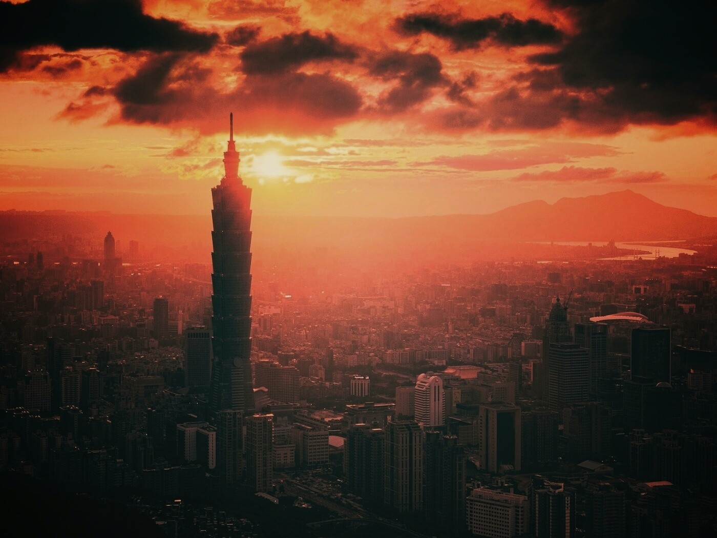 Обои для рабочего стола «Башня на закате» 1400х1050 с фильтром earlybird (оригинал 1920х1200)
