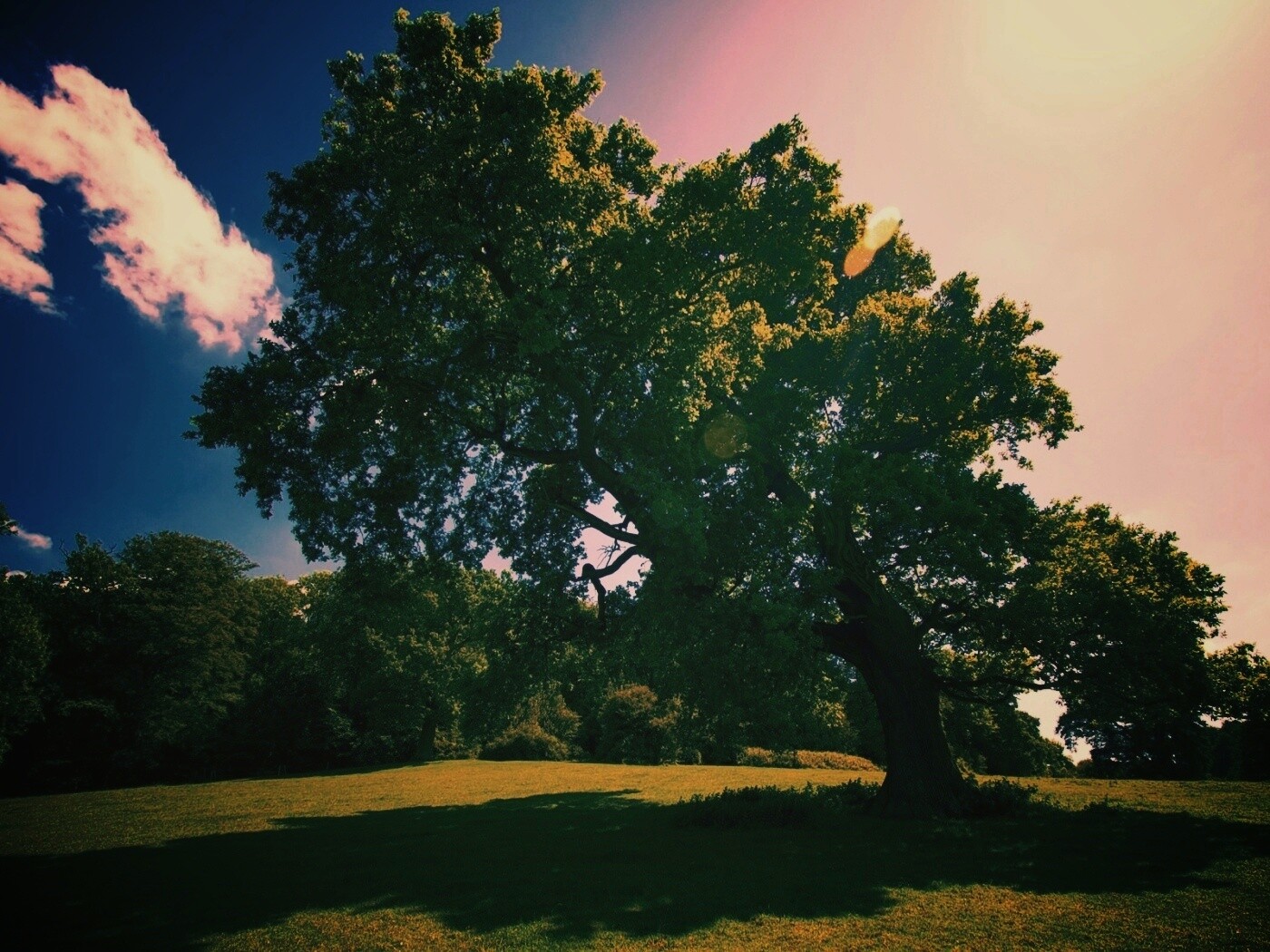«Большое зеленое дерево на лужайке»