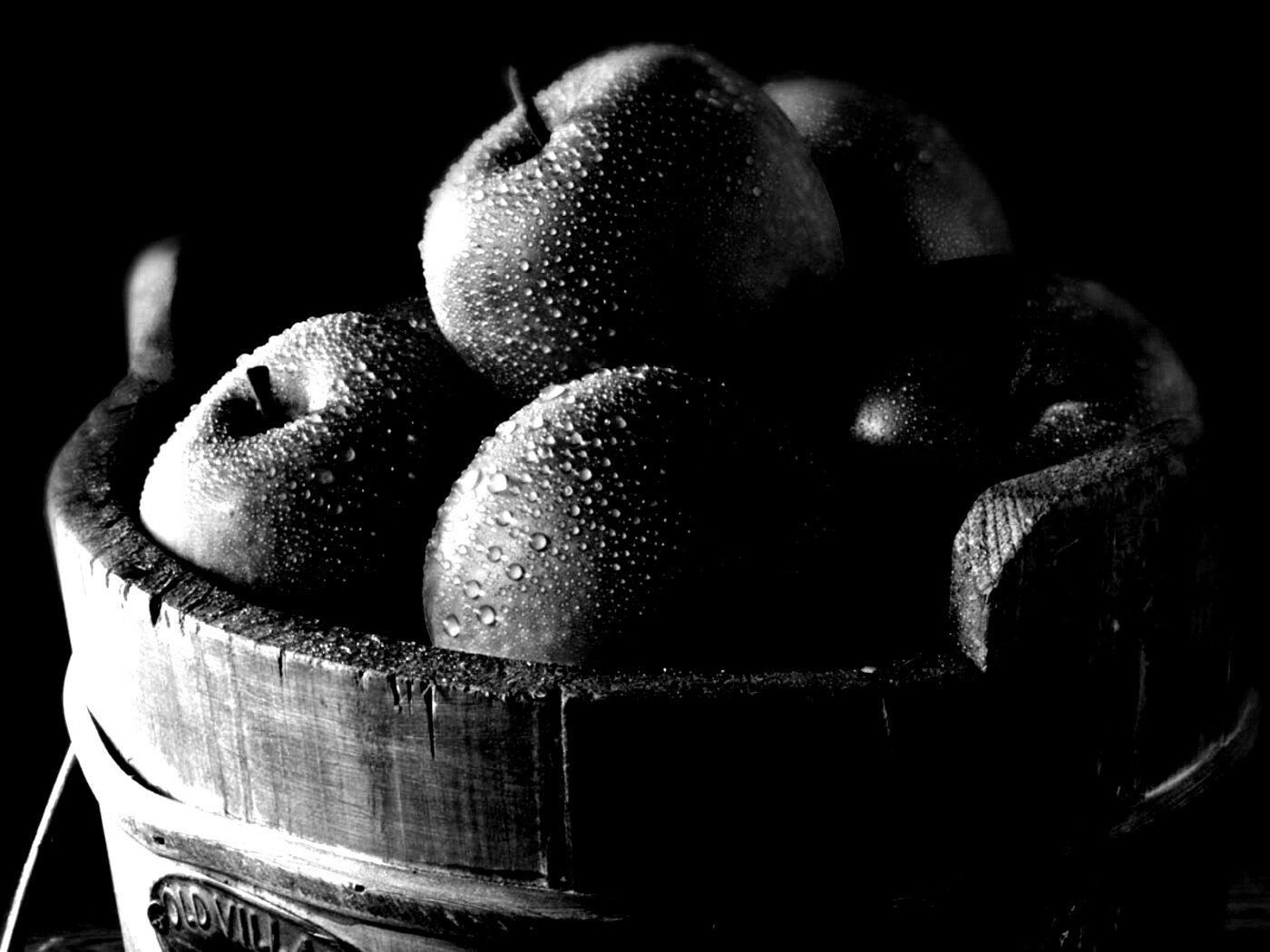 Обои для рабочего стола «Ведро зеленых яблок» 1400х1050 с фильтром inkwell (оригинал 1920х1200)