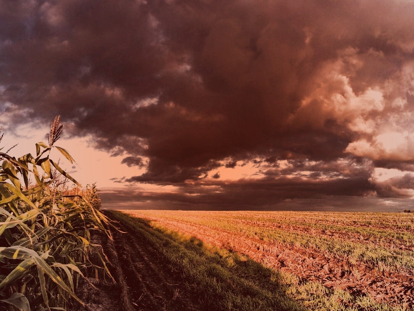 Обои для рабочего стола «Кукурузное поле» 1400х1050 с фильтром toaster (оригинал 3200х1200)