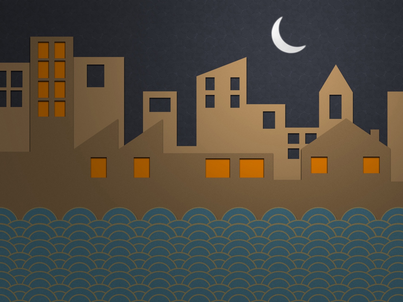 Обои для рабочего стола «Ночной город на реке» 1400х1050 (оригинал 1920х1200)