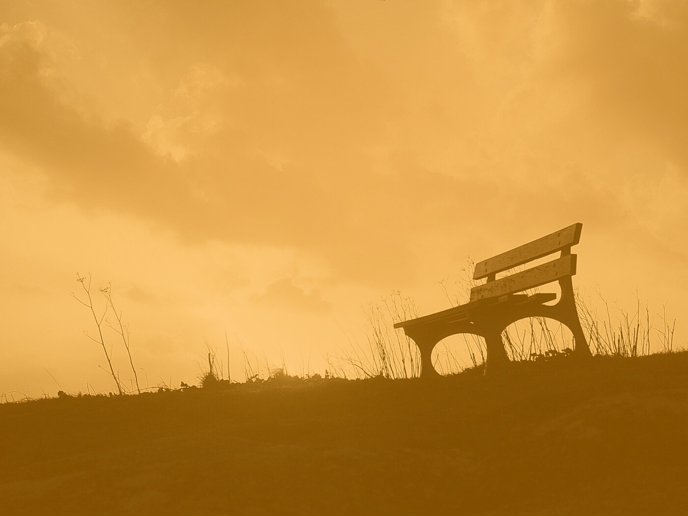 «Силуэт скамейки на фоне неба»
