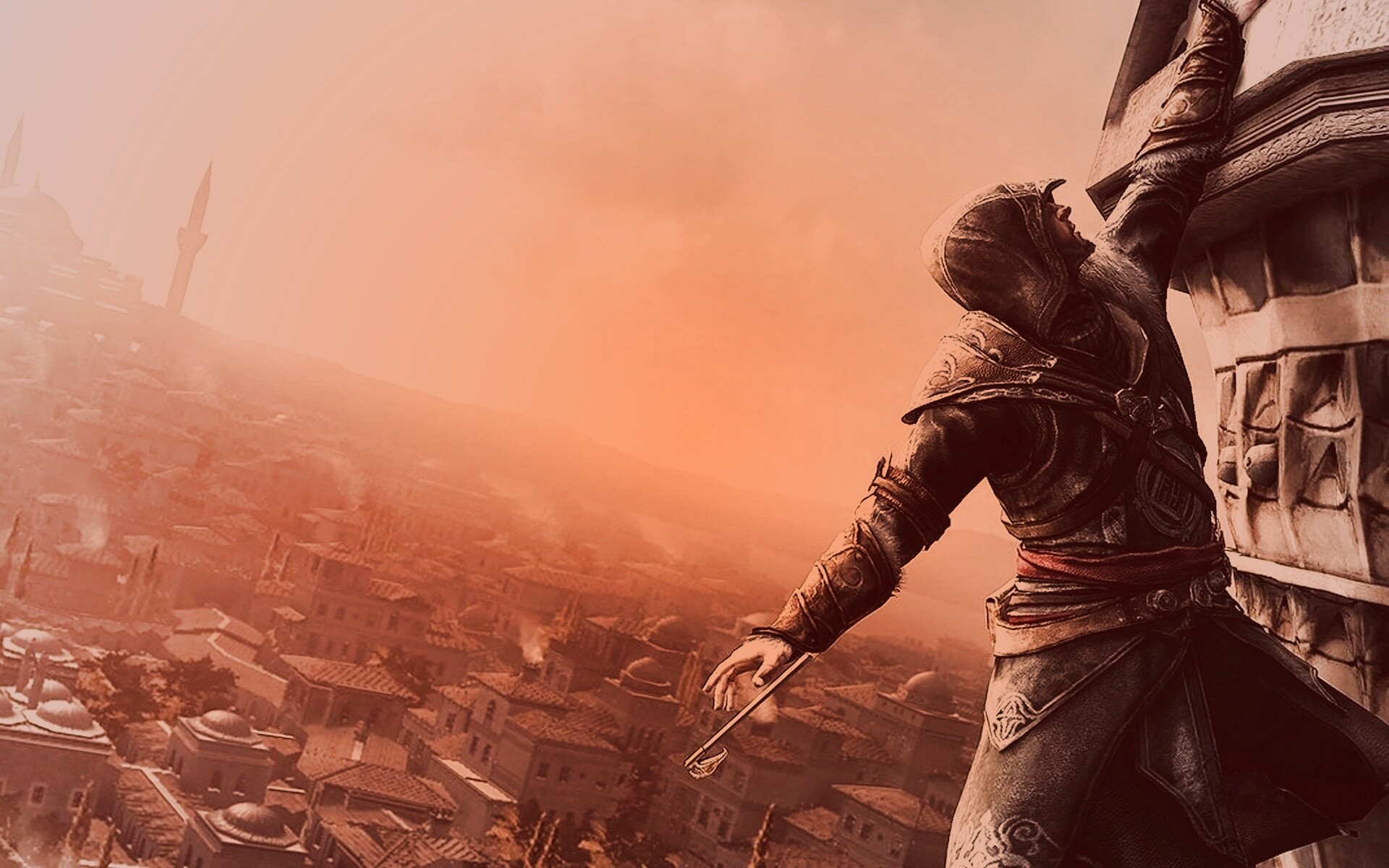 Обои для рабочего стола «Ассасин лезет на башню» 1920х1200 с фильтром toaster (оригинал 2048х2048)