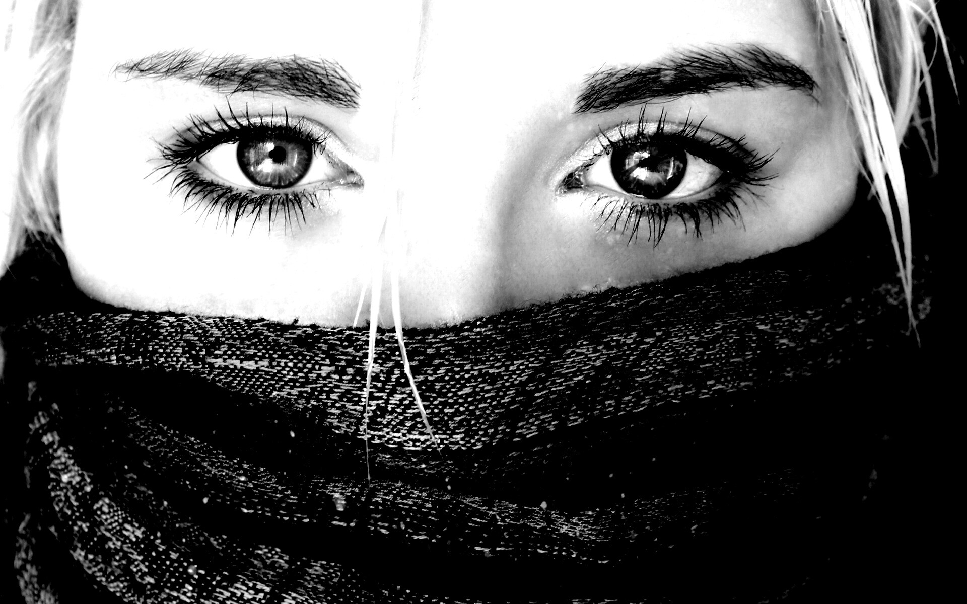 «Блондинка с шарфом на лице»