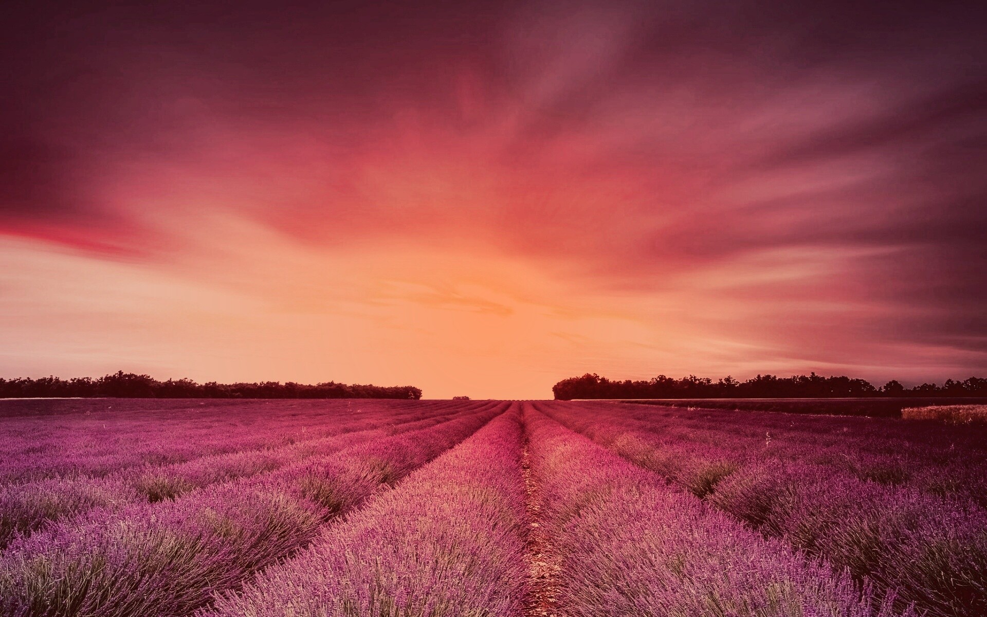 «Поле фиолетовых цветов на закате»