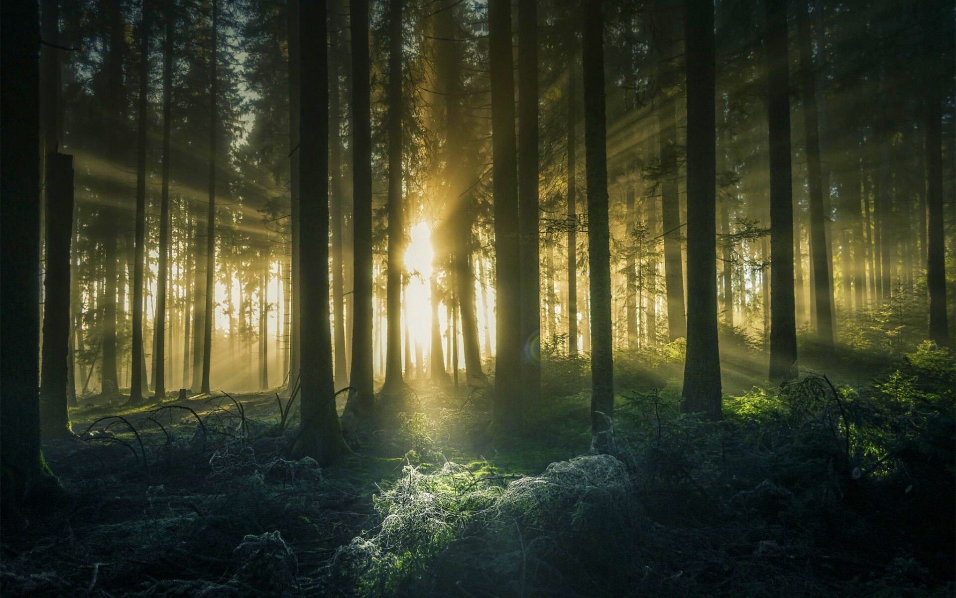 «Свет пробивается сквозь стволы деревьев»