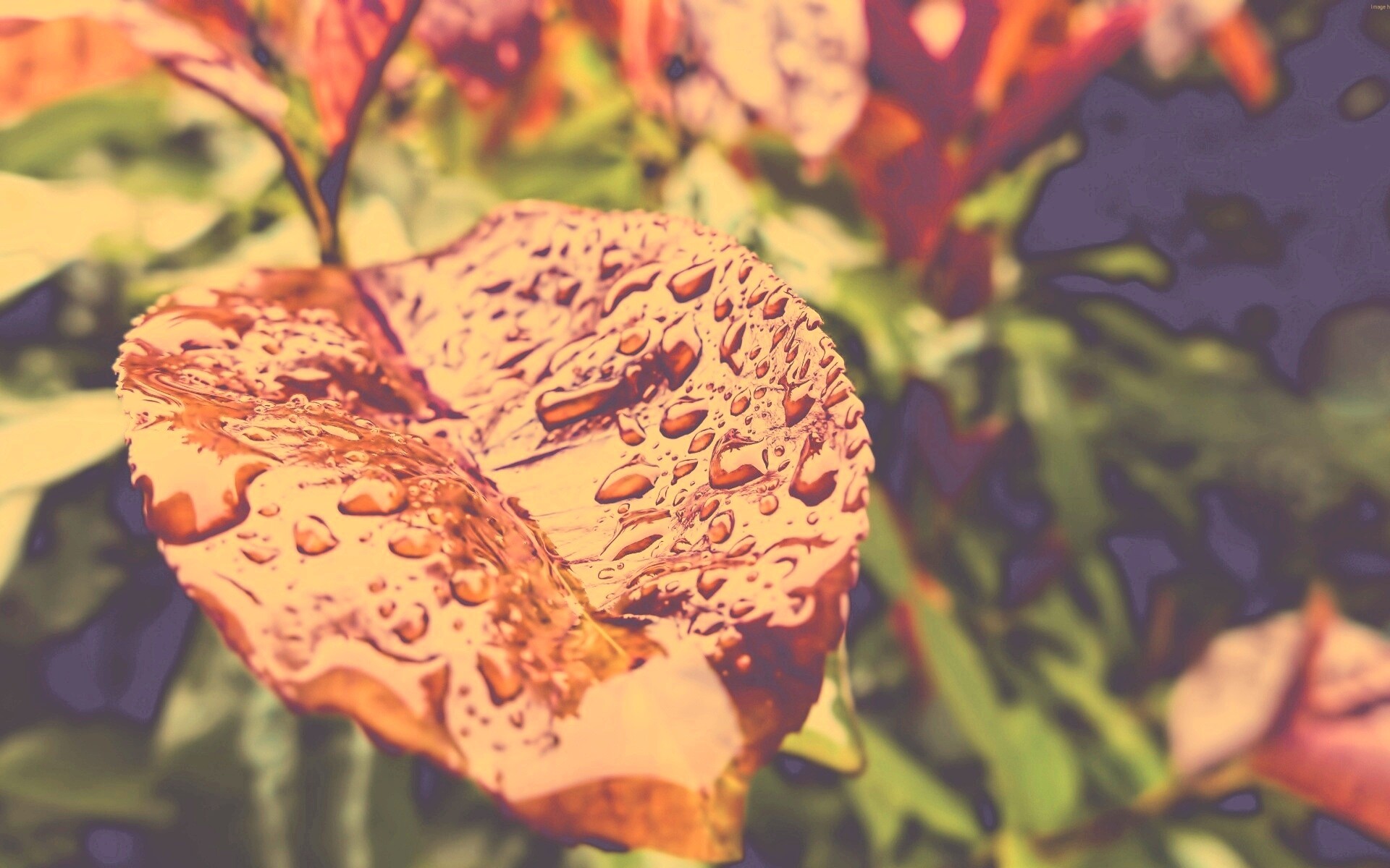 «Красный лист в каплях воды»