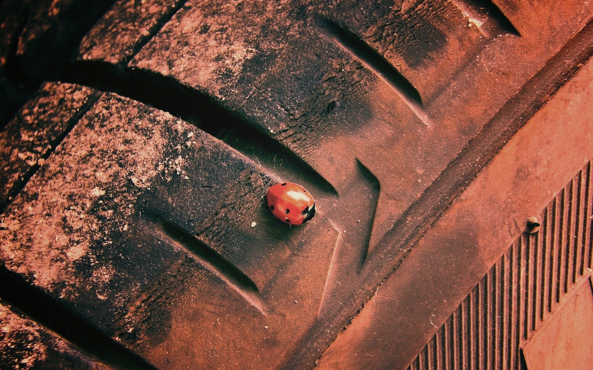 «Божья коровка на автомобильной покрышке»