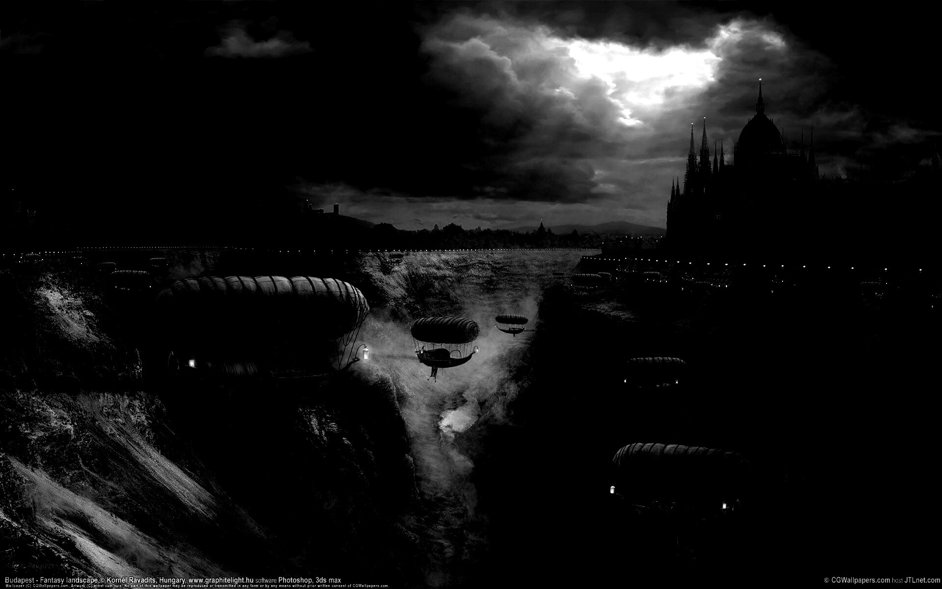 Обои для рабочего стола «Фентезийный Будапешт» 1920х1200 с фильтром inkwell (оригинал 1920х1200)